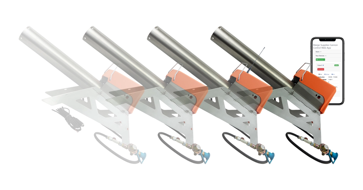 This cannon uses the Margo Electra Scare Cannon as a base with NEW Cellular control. Experience the added ease of remote firing and monitoring. Control your cannon, view its status, and customize settings from anywhere with an internet connection.