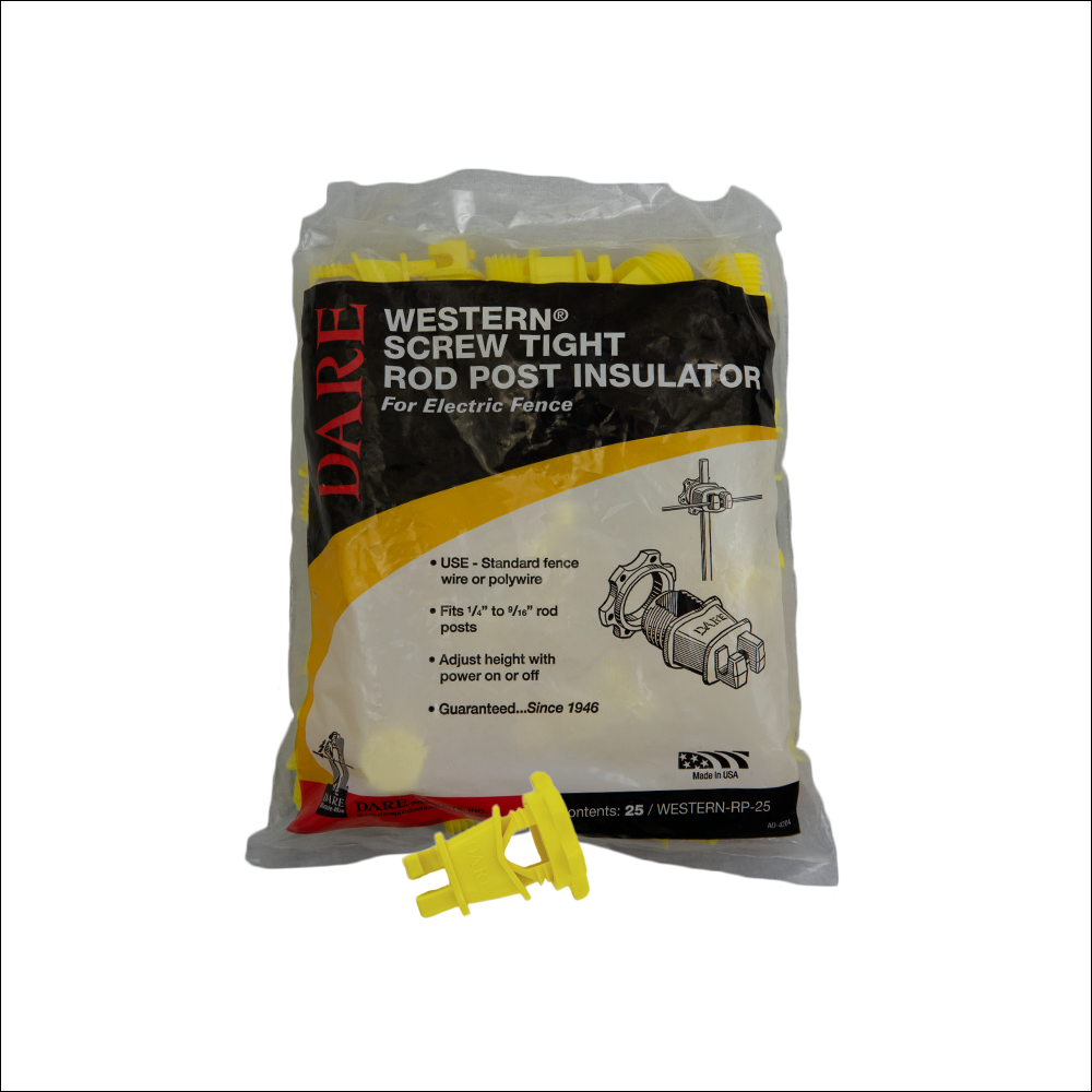 The Screw-Tight Round Post Insulator is for round posts. These spin-on insulators can be adjusted to any height while current is on. Prime high-density polyethylene with UV inhibitor. There is generous water run-off space.