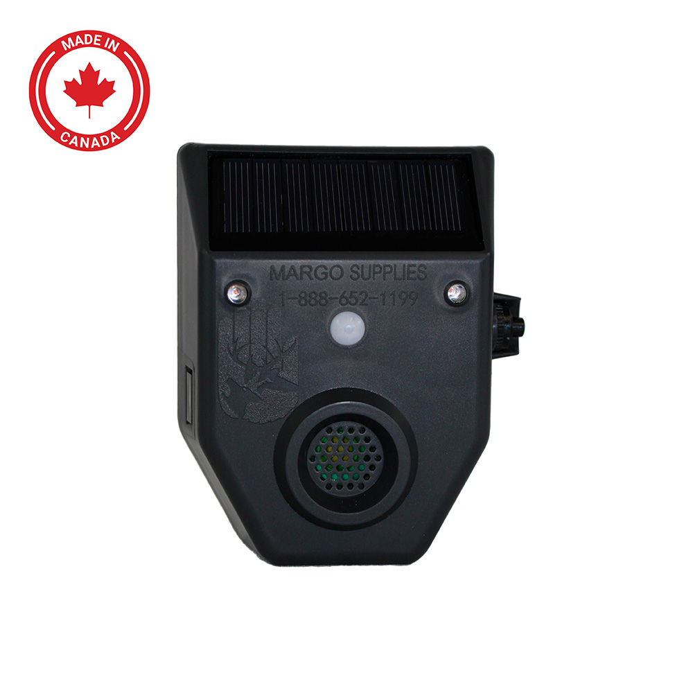 The Margo Critter Guard is a versatile audio deterrent that broadly deters a variety of animal species. Do you want to keep bears away from your trash bins? Or deer out of your vegetable garden? The Critter Guard is here to help! The Critter Guard uses unfamiliar sights and sounds to confuse intruding animals. This causes animals to flee and discourages them from returning to the area.