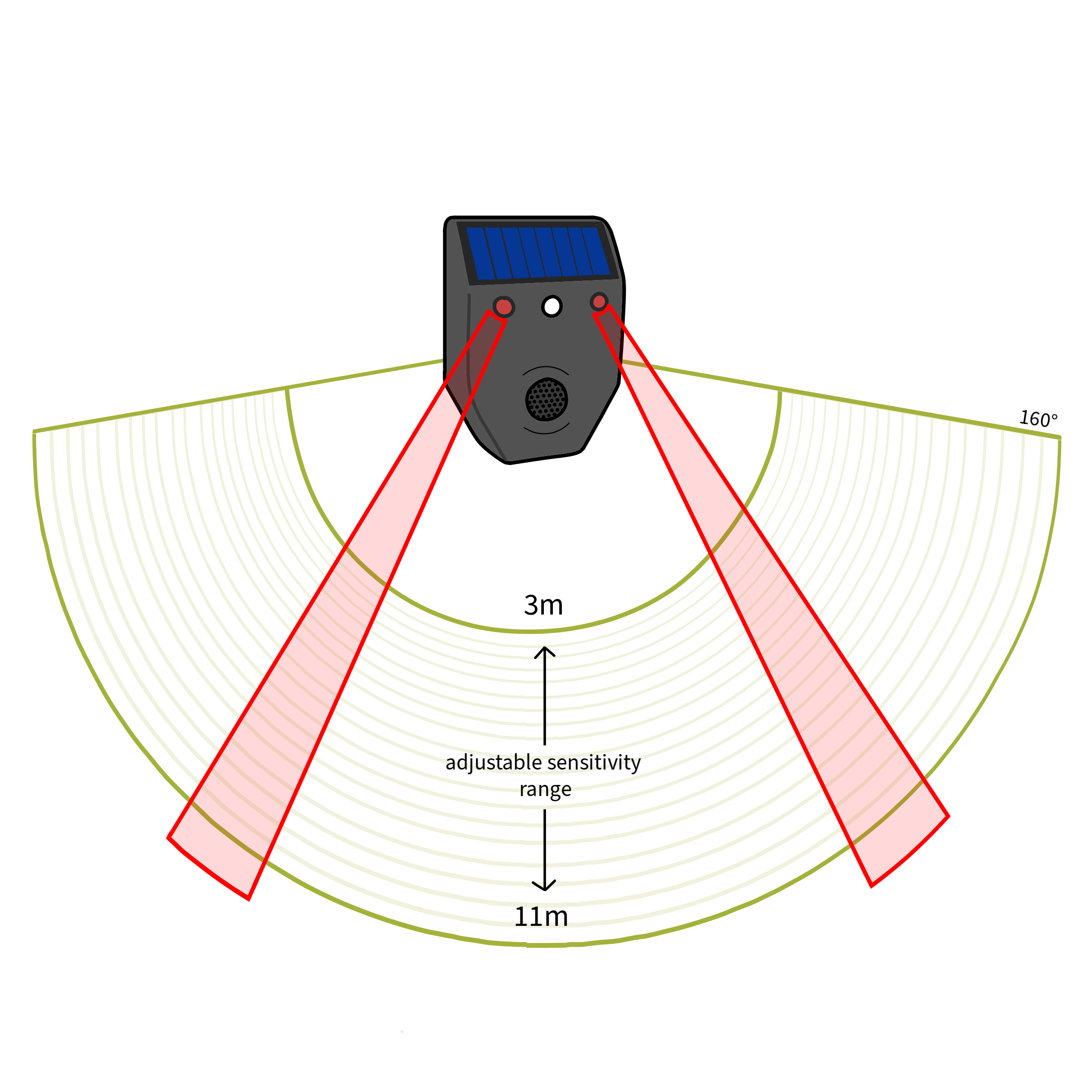 • 105dB sirens and flashing 7500mcd LEDs will deter a variety of wildlife