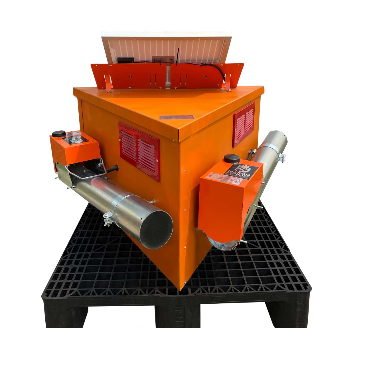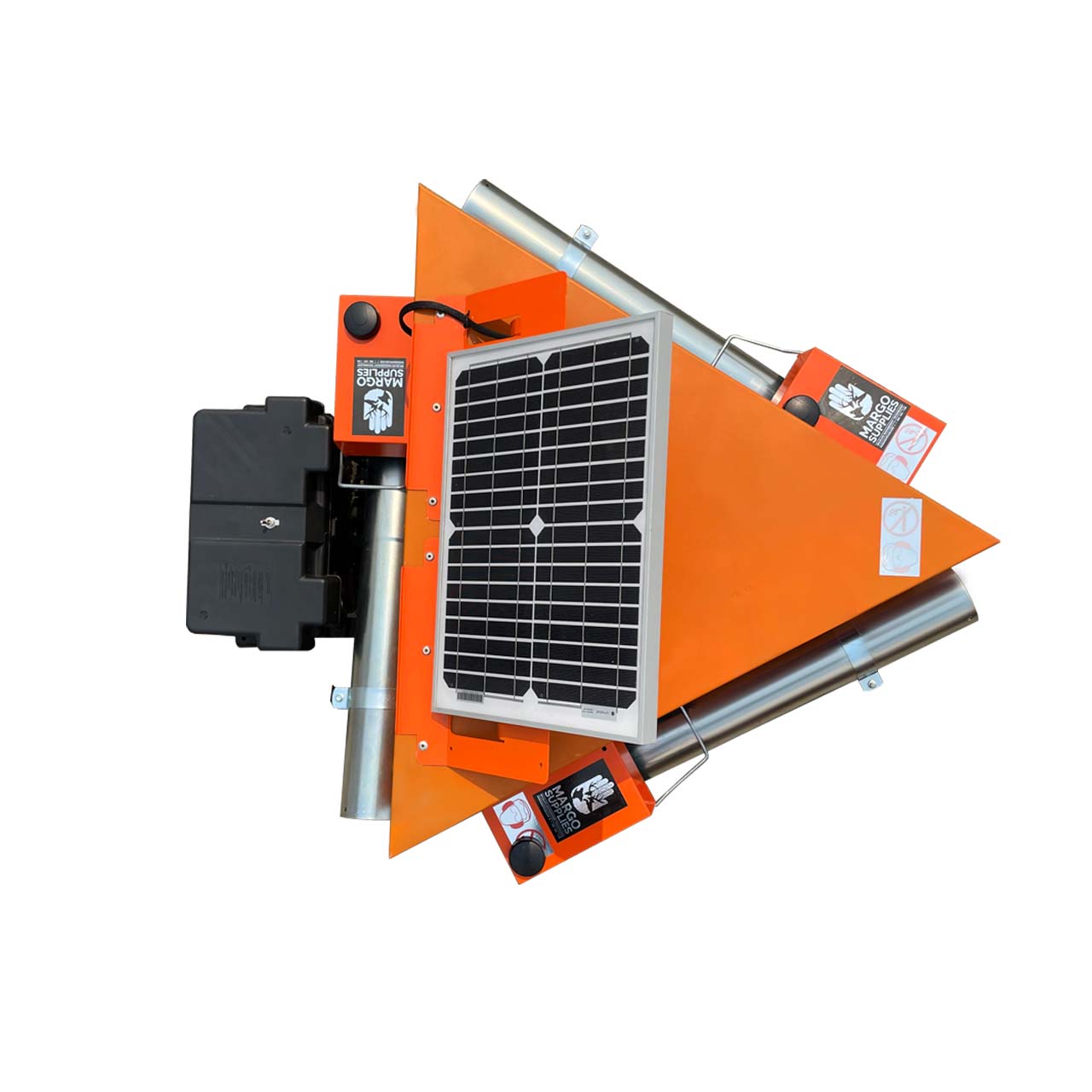 The Margo Trident uses 3 Electra Scare Cannons for maximum effect. All cannons are mounted in a single stationary box that creates multiple blasts that scare birds away from areas where they can cause damage to property or are at risk themselves. Protect high-value assets with maximum firing capabilities to deter even the most determined birds. The trident offers a multi-directional cannon configuration making it ideal for military and aviation industry use.