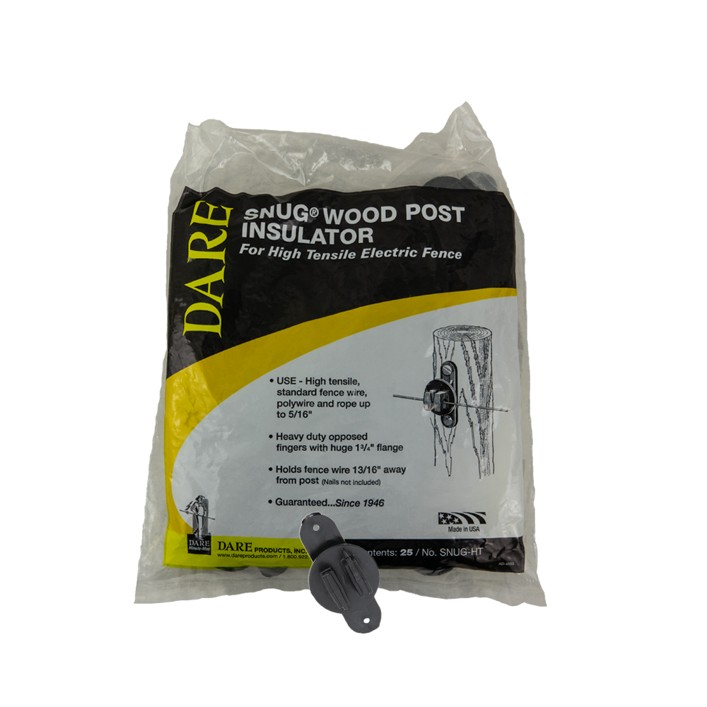 The Nail-On Insulator is an affordable and durable electric fence insulator. Nails onto wood posts. Keeps wire ¾” from posts.